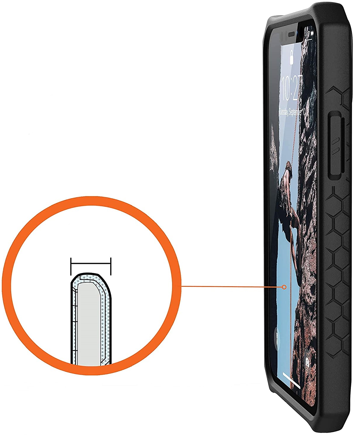 Комбінована структура забезпечує чохлу термін служби 10 років, що робить його виправданим вкладенням у безпеку техніки Apple. Передбачені шари доповнені посиленими кутами, міцність яких відповідає армійським стандартам випробувань на падіння MIL STD 810G 516.6.