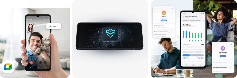 Використовуйте застосунок Google Meet на Galaxy A06 та здійснюйте відеодзвінки. Google Meet інтегрований для зручного та надійного доступу. Насолоджуйтеся чітким і стабільним відеозв'язком як для бізнесу, так і для особистих цілей.