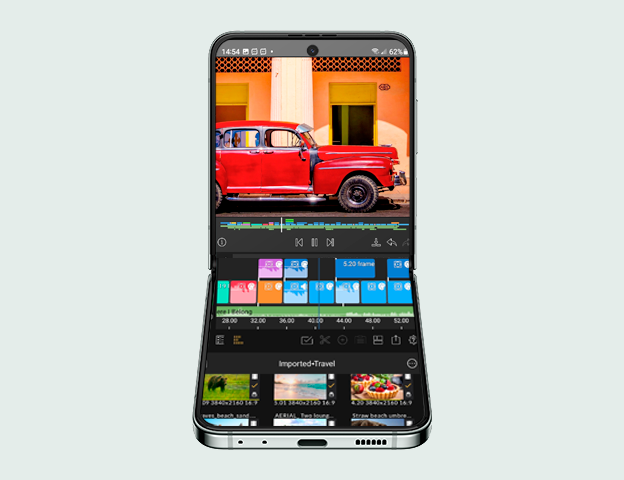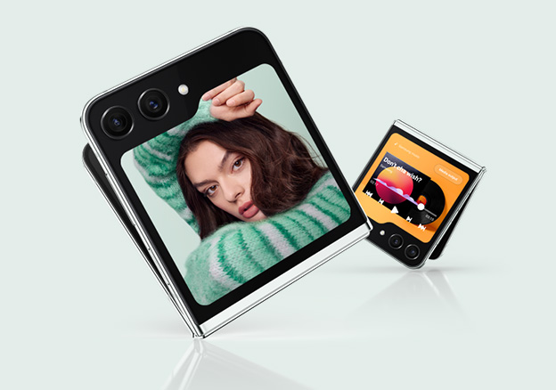 Galaxy Flip5 представляє 3,4-дюймовий екран Flex Window, створений для самовираження. Компактний і привабливий з усіх боків, цей складаний смартфон настільки ж універсальний, наскільки й портативний.