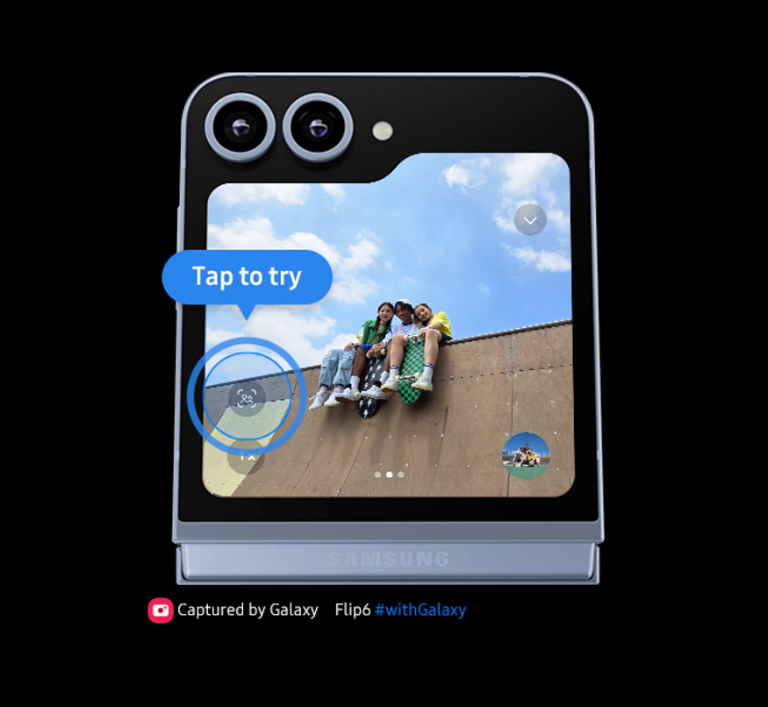 Galaxy Flip6 – ваш пристрій для самовираження став ще компактнішим і привабливішим. Новий смартфон оснащений функціями Galaxy AI та камерою 50 Мп для професійної фотозйомки.