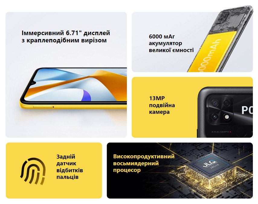 Смартфон POCO C40 готовий довести, що справжній напарник візьме вагому частку турбот на свої плечі. Техніка з екраном діагоналлю 6.71”, акумулятором 6000 мАг, модулем зчитування відбитків пальців та іншими плюшками дозволить оперативно вирішувати будь-які завдання протягом дня.