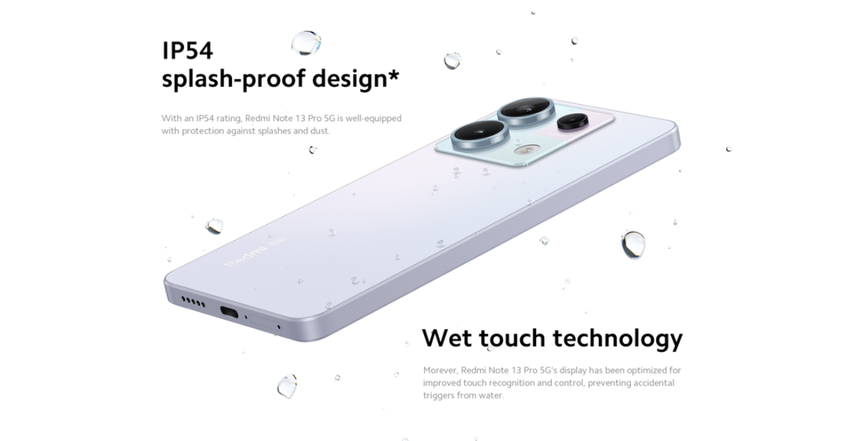 Конструкція гаджета захищена за стандартом IP54: всередину корпусу не потрапляє пил і бризки води. Технологія мокрого доторку покращує розпізнавання й керування кліками, знижуючи кількість невірних спрацьовувань через підвищену вологість сенсорної панелі або рук користувача. Корпус обладнано рамою з посиленими кутами з алюмінієвого композиту з амортизувальним шаром для захисту внутрішніх деталей під час падінь.