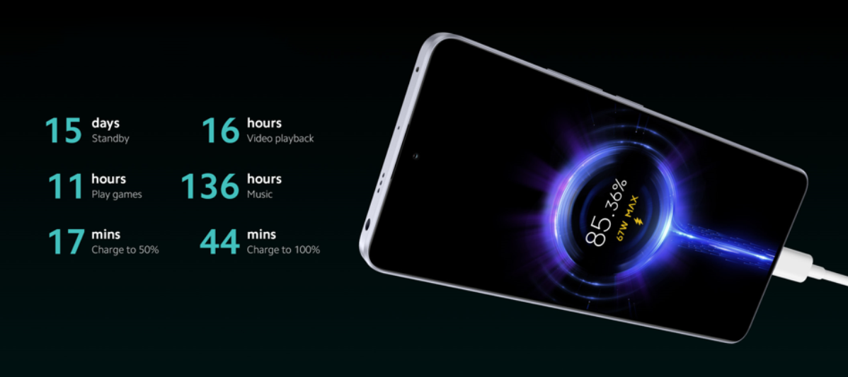 Девайс обладнаний акумулятором ємністю 5 100 мА·год, який забезпечує автономність протягом 24-36 годин. На одному заряді батареї можна дивитися потокове відео протягом 16 годин або грати протягом 11 годин. Турбозарядка на 67 Вт за 17 хвилин заряджає батарею до 50%, а за 44 хвилини до 100%. За низького рівня заряду батареї процес заряджання прискорюється на 25%, щоб якнайшвидше знову користуватися смартфоном на максимум.