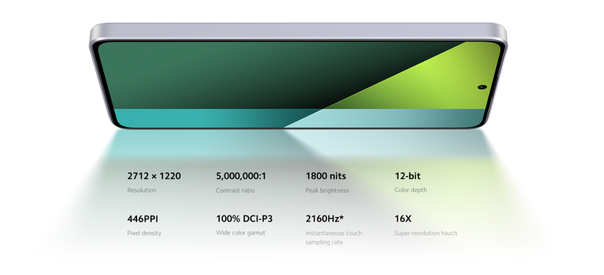 Скляні панелі з плавними лініями граней мають ефектний вигляд. Ергономічний корпус завтовшки 7,98 мм із продуманим форм-фактором комфортно розташовується в долонях. Дисплей має ультратонкі рамки, що збільшує робочу площу й створює ефект безмежності під час використання смартфона Xiaomi Redmi Note 13 Pro.