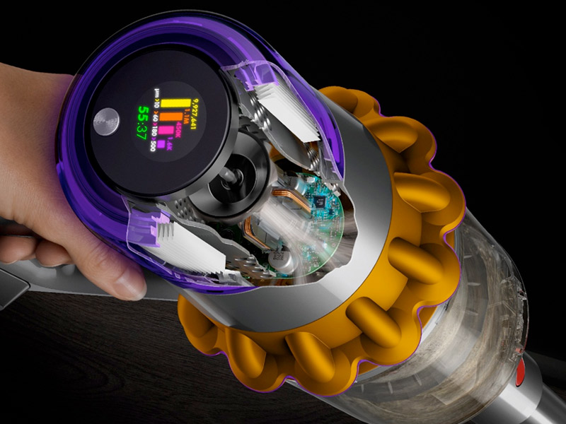 Потужний і легкий двигун з цифровим керуванням обертається на швидкості до 125 000 оборотів за хвилину, створюючи оптимальну потужність всмоктування для збирання великого сміття та пилу.