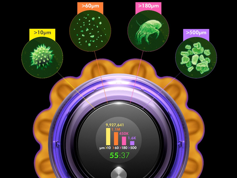 П'єзоелектричний датчик безперервно вимірює та підраховує частинки пилу, при необхідності автоматично збільшуючи потужність всмоктування.
