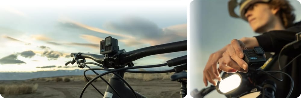 • Бездротові з'єднання: Wi-Fi (Wi-Fi 6, 2.4 ГГц, 5 ГГц, 802.11 a/b/g/n/ac) + Bluetooth (BLE 5.3) • Автовивантаження в облако: У комплекті з підпискою GoPro • Звукозапис в форматі RAW: WAV формат • LiveBurst • Сенсорний зум: до 2x • Циклічна зйомка • Таймлапс-відео: до 5.3K • Сповільнена зйомка: 8x - 2.7K; 1080p, 4x - 4K, 2x - 5.3K, Burst Slo-Mo, 13x (400 кадрів/с) - 720p на 15с, 12x (360 кадрів/с) - 900p на 15с, 4x - 5.3K на 5с • Таймер фотозйомки: 3с, 10с • Передустановки налаштувань / передустановки користувача • Настроювані екранні ярлики • Голосове управління: 14 команд, 11 мов з 6 акцентами • Пряма трансляція: 1080p30 з HyperSmooth + запис 1080p60 • Розширені метадані • Protune • Відкладена зйомка • Зйомка заданий час
