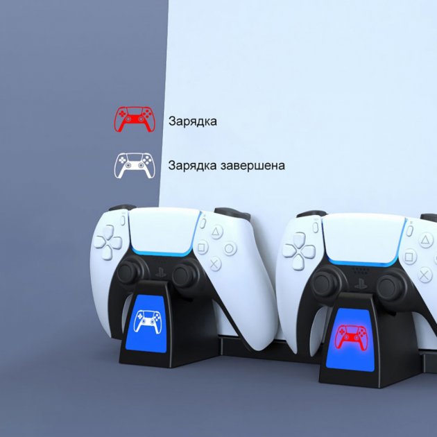 Вихідна напруга: 5В. Зарядний струм: 800 мА (один геймпад). Заряджає 2 контролери одночасно. LED-індикатор статусу заряджання. 14 слотів для ігрових дисків. Знімний утримувач для навушників/VR-окулярів.