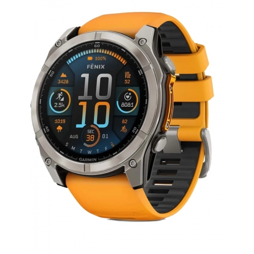 Смарт-годинник Garmin Fenix 8 51mm AMOLED Sapphire, Titanium with Spark Orange/Graphite Silicone Band