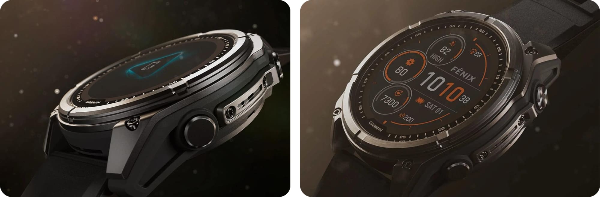 Створений для довговічності, цей дизайн преміум-класу підходить для занурення та має герметичні кнопки, металеву захисну кришку сенсора та постійно ввімкнений 1,3-дюймовий дисплей із сонячним зарядом із стійким до подряпин сапфіровим склом і титановою рамкою ;