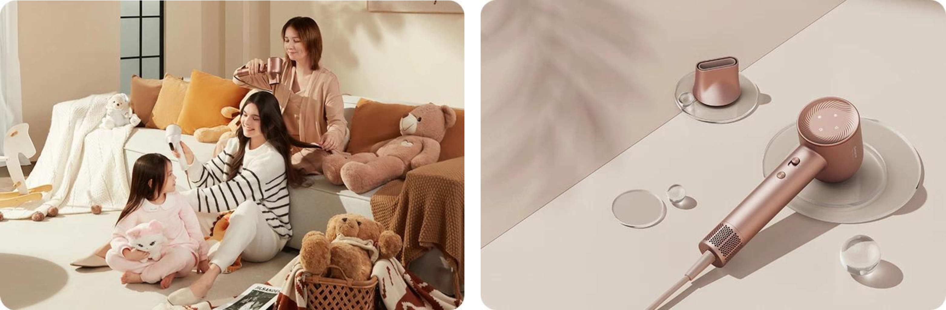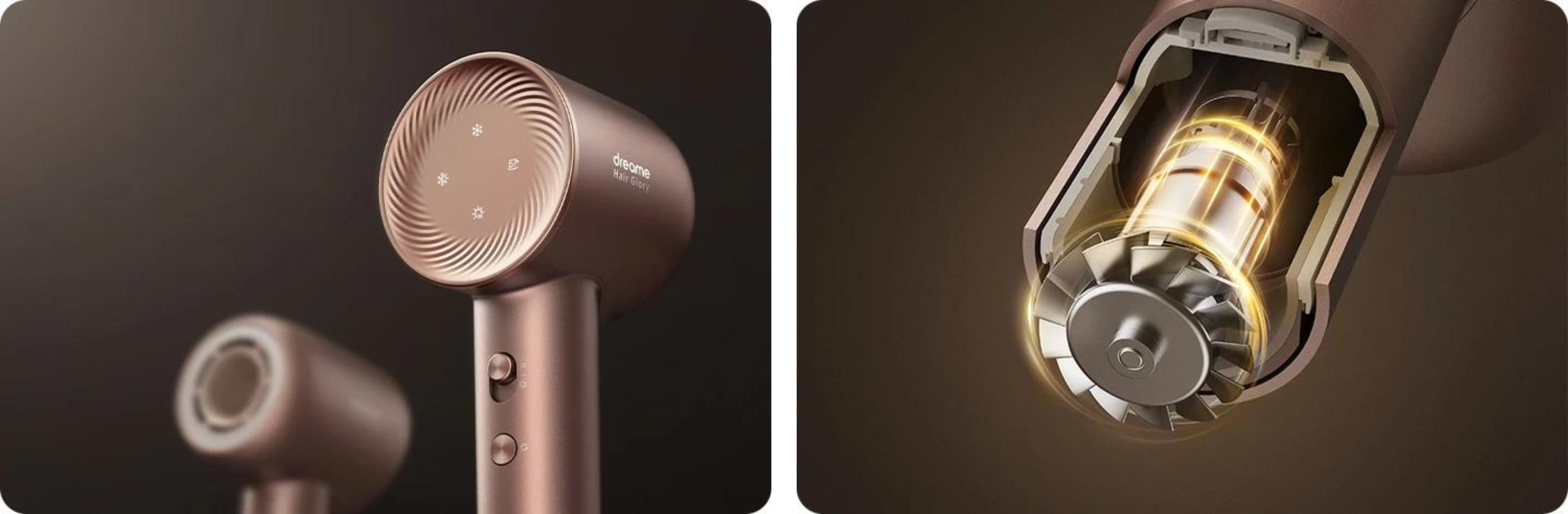 Фен Dreame Hair Dryer Glory RS має легку та зручну конструкцію.Колір корпусу здивує кожну дівчину, а комплект нікого не залишить байдужим. Девайсом дуже приємно користуватись і його хочеться тримати в руках. Прості та прямі лінії дозволять девайсу тривалий час залишатися у дизайнерських трендах та не старіти зовнішністю довгі роки.