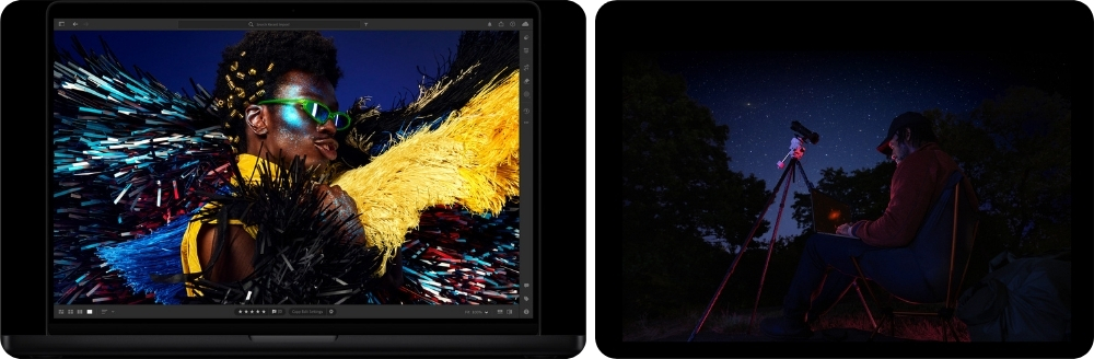 Дисплей MacBook Pro з піковою яскравістю 1600 ніт і підтримкою HDR забезпечує чудову якість зображення, даючи змогу бачити деталі навіть за яскравого світла або в умовах низької освітленості.