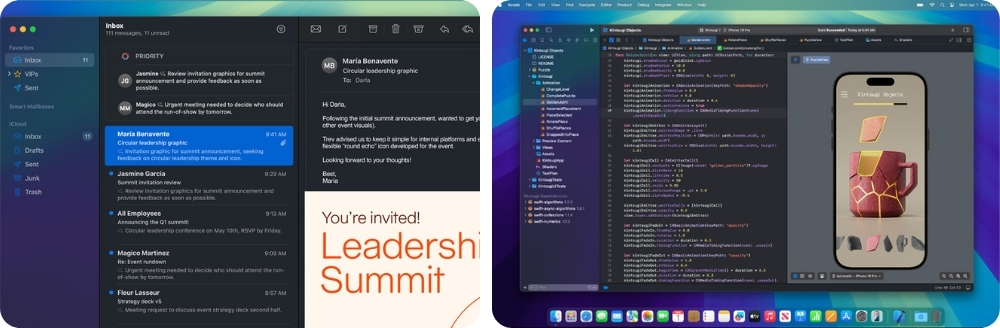 MacBook Pro підходить для розробки та тестування коду, даючи змогу запускати віртуальні машини та працювати зі стеками. Функція інтелектуального завершення коду в Xcode економить час розробників, роблячи їхню роботу ефективнішою.