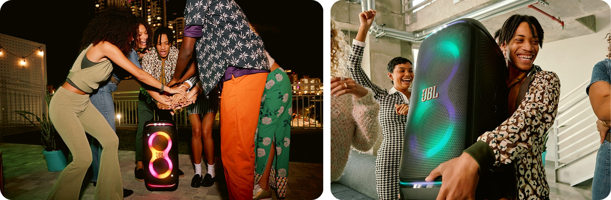 Додаток JBL PartyBox спрощує додавання інтерактивних ефектів вечірки, керування музикою, регулювання налаштувань еквалайзера та налаштування кольорів та шаблонів світлового шоу для створення ідеальної атмосфери вечірки.