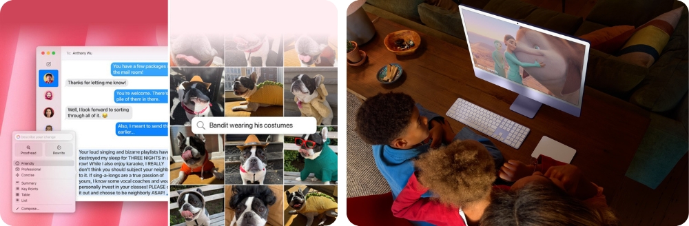 Система предоставляет мощные инструменты для проверки и редактирования текста, а также мгновенного поиска фотографий и видео по описанию. С помощью функции Image Playground вы можете создавать оригинальные изображения на основе текста или даже выбранных фото из вашей библиотеки. Благодаря этим возможностям работа с контентом становится интуитивно понятной и увлекательной.