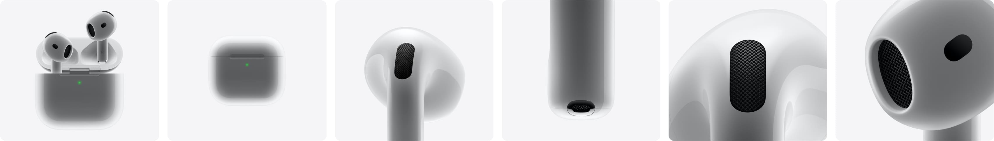 Мощность на несколько часов с меньшим, но более мощным чехлом. Аккуратно заряженный чехол меньше по объему более чем на 10 процентов по сравнению с предыдущим поколением, без ущерба для времени зарядки. И AirPods 4 с активным шумоподавлением имеют беспроводной зарядный чехол – самый маленький в индустрии с этой возможностью – а также встроенный динамик для Find My, чтобы помочь вам отслеживать его.
