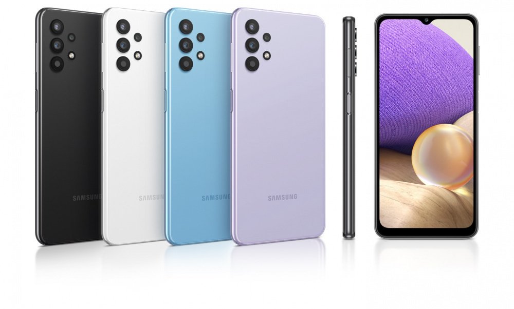 Galaxy A32 отлично смотрится и его комфортно держать в руке. Необычный дизайн камеры и блестящая текстура задней панели выделяют этот смартфон среди прочих. Смартфон выполнен в трех цветах: черный, лавандовый и синий.
