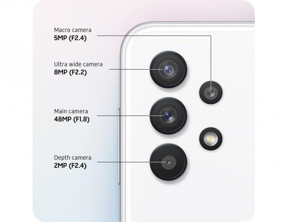 Четыре AI камеры Galaxy A32 поднимают уровень качества фото на новую высоту. Делайте более четкие снимки 64-мегапиксельную основную камеру. Расширьте поле зрения камеры с помощью сверхширокоугольной камеры. Управляйте резкостью камеры с датчиком глубины или снимите детали объекта с помощью Макро камеры.