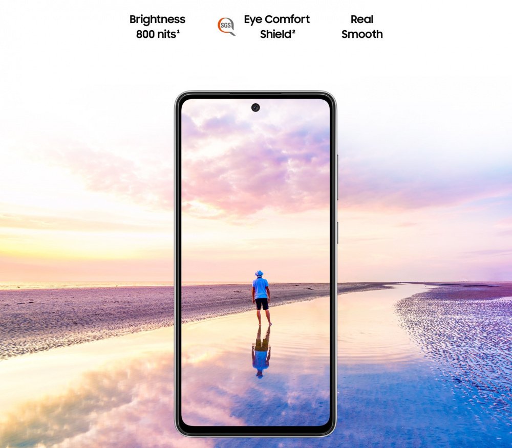 Наслаждайтесь подробным изображением на Super AMOLED 6,5'' Infinity-O экране с разрешением FHD+ и яркостью до 800 нит, которое отлично видно даже при ярком дневном свете. Функция защиты глаз "Eye Comfort Shield" снижает уровень синего свечения, а надплавная прокрутка обеспечивает комфортный просмотр во время игрового сеанса или скроллинга изображения на экране.