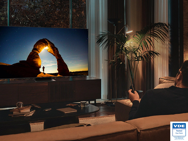 Унікальний режим EyeComfort від Samsung попередньо завантажує на ваш екран місцевий час заходу і сходу сонця, щоб можна було автоматично змінювати налаштування дисплея. Крім того, режим EyeComfort знижує яскравість і насиченість кольорів після заходу сонця, тому зображення стає м'якшим.