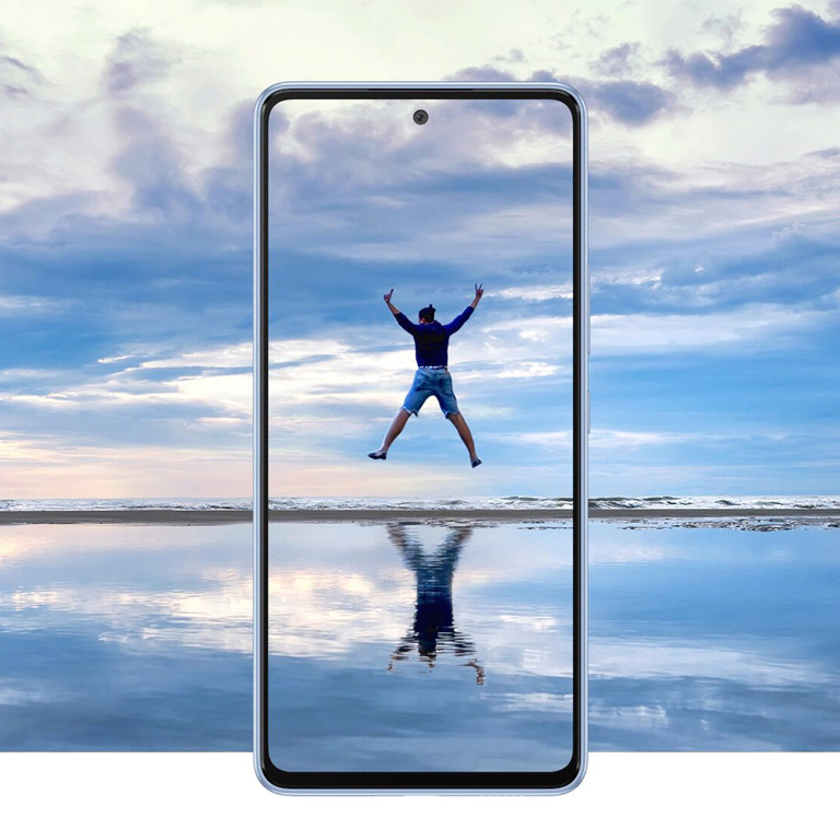 Варто віддати належне якості зображення, яке бачить користувач на екрані смартфона Samsung Galaxy A53 5G. Кінематографічний рівень картинки притаманний навіть найпростішому контенту за рахунок дисплея Super AMOLED з роздільною здатністю FHD+. Яскравість до 800 ніт робить кожен відтінок соковитим та приємним оку. А технологія Eye Comfort Shield подбає про фільтрацію синього випромінювання, яке стомлює органи зору.