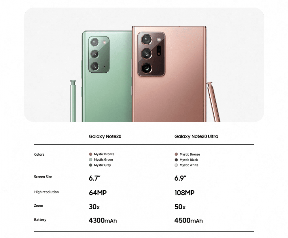 Galaxy Note20 і Note20 Ultra оснащені інтелектуальними акумуляторами ємністю 4300 мА · год і 4500 мА · год, які оптимізують витрати енергії. Тепер після довгого робочого дня у вас залишиться енергія на розваги!