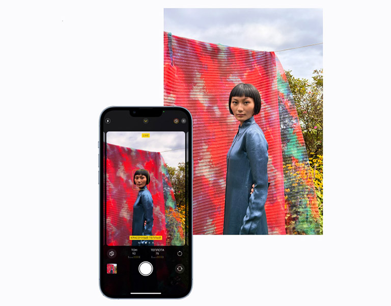 Трикратний оптичний зум для нової телефотокамери з фокусною відстанню 77 мм дозволяє отримувати деталізовані фото і відео здалеку. При зйомці зблизька використовуйте ефект розмиття фону з налаштуванням глибини або ефекти студійного освітлення для Портретного режиму. Оптичний зум 6х для всієї системи камер надає більше можливостей для вираження творчого натхнення.