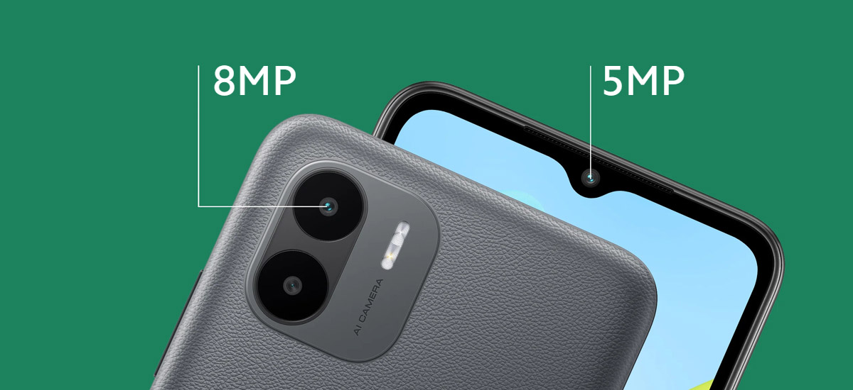 Redmi A1 з подвійною камерою 8 Мп, потужним сучасним процесором MediaTek Helio A22, ємною батареєю на 5 000 мАг та 6.52-дюймовим HD+ дисплеєм створений для того, щоб ви отримали максимум можливостей для роботи, відпочинку та спілкування, де б не знаходилися.